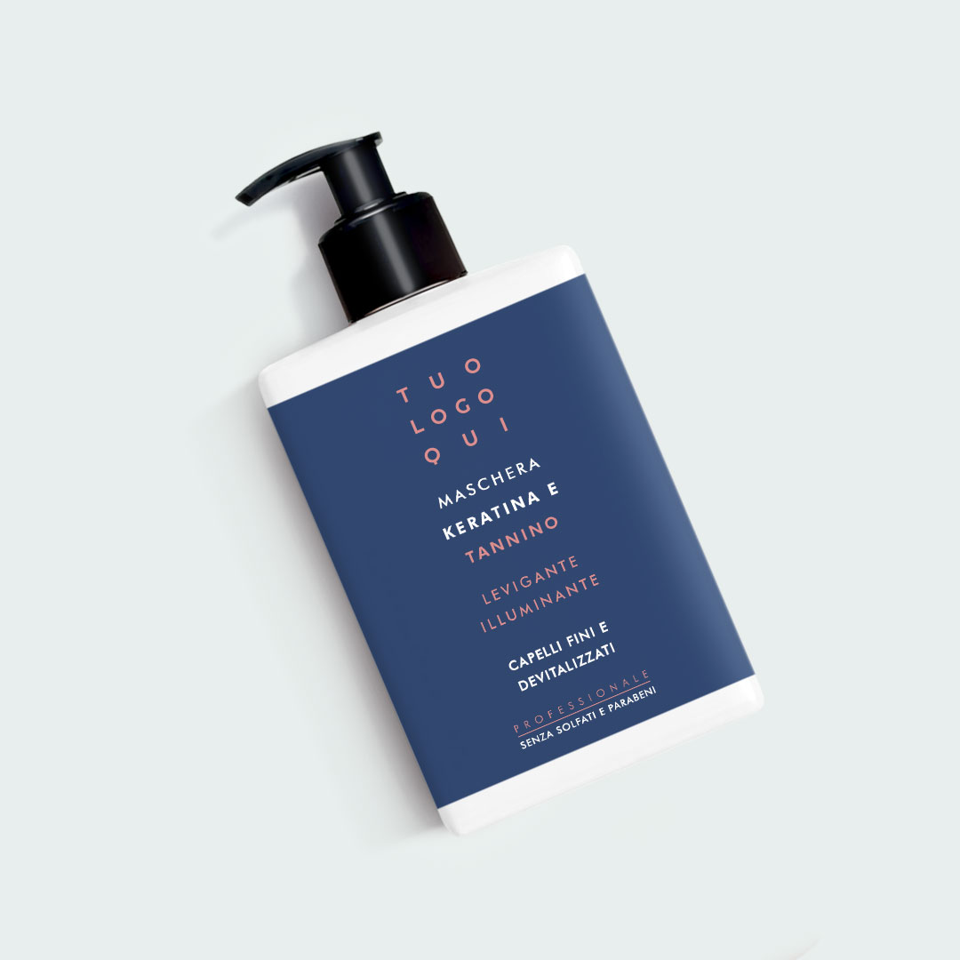 La maschera professionale alla cheratina e tannino nutre in profondità i capelli e li arricchisce di proteine. Il tannino è di origine vegetale e permette ai capelli di fortificarsi e idratarsi donandogli lucentezza e elasticità.